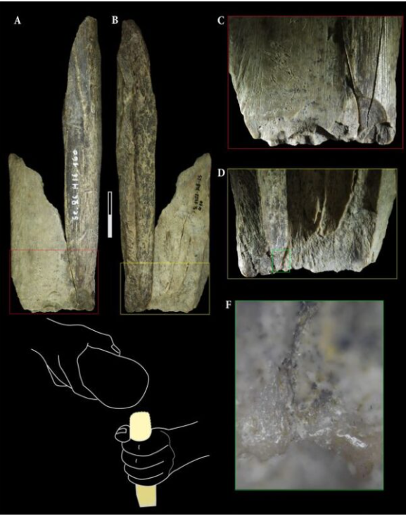 이 정강이뼈는 처음에는 '중간 도구(intermediate tool)'로 사용된 후, 부싯돌을 다듬는 '리터처(retoucher)'로 용도가 변경되는 등 여러 기능을 수행하도록 의도적으로 가공됐다. 두 개의 뼈 도구는 심지어 완벽하게 맞물려, 도구 제작 과정의 의도성과 정교함을 드러내고 있다.