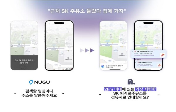 에이닷이 적용된 티맵은 운전자가 “주유소 들렀다 집에 가자”와 같이 자연스러운 문장을 말하면 목적지와 경유지를 동시에 인식해 최적 경로를 안내한다. 또한 부정확한 지명을 말하더라도 자동 교정 기능을 통해 올바른 목적지를 제안해 기존 대비 편의성과 안전성이 크게 향상됐다.