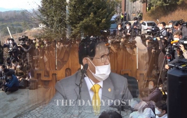2일 이만희 신천지 총회장은 자신의 별장이기도 한 가평 평화의 궁전에서 코로나19 신천지 관련 기자회견을 열었다.